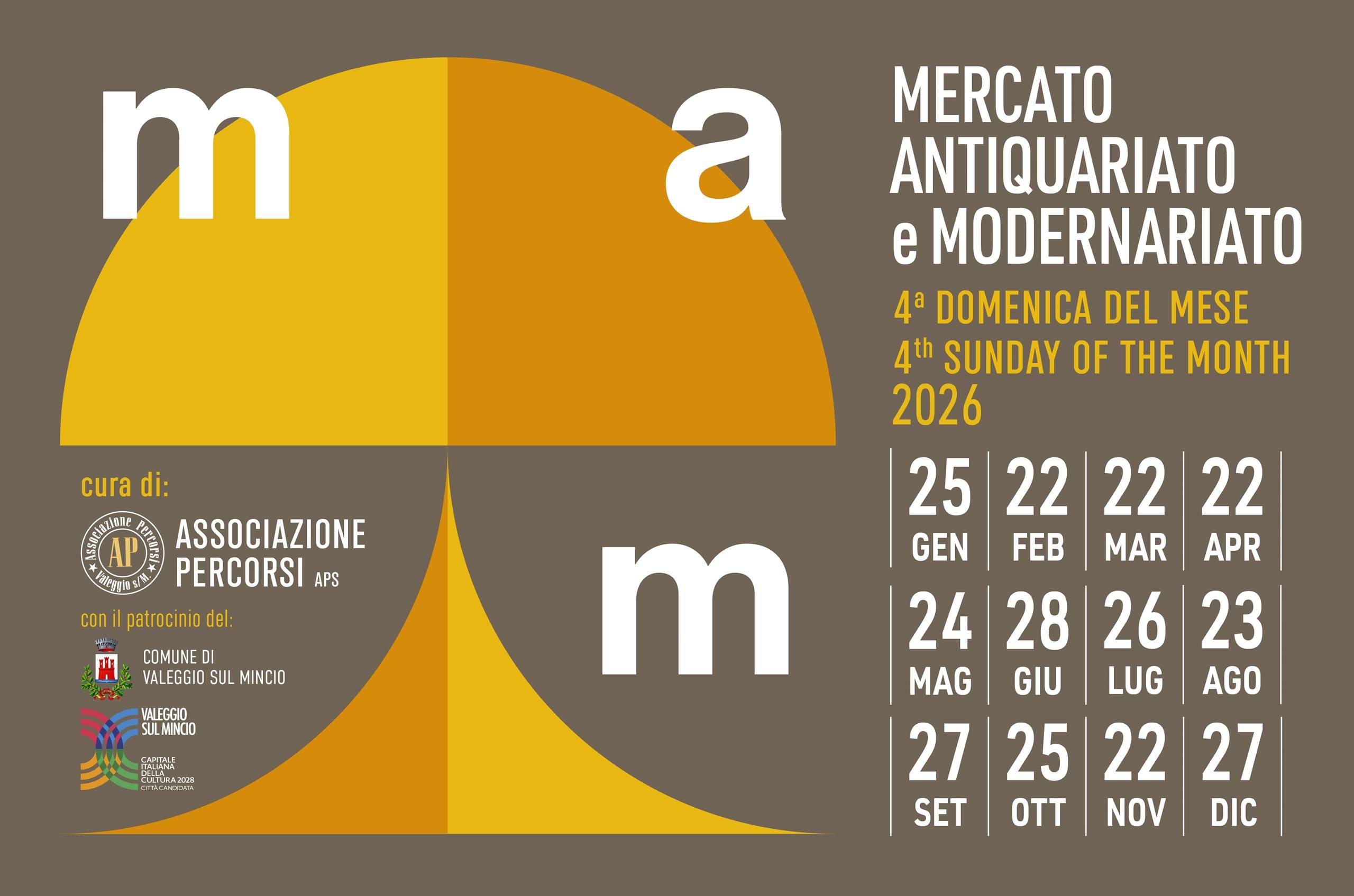 Nato nel Giugno del 1994 per iniziativa dell'Associazione Percorsi, il mercato dell'Antiquariato di Valeggio sul Mincio si svolge ogni 4° domenica del mese, nella piazza centrale del paese e nelle adiacenti vie del centro storico.