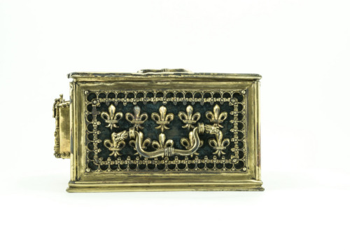 Carlo V re di Francia aveva realizzato questa cassettina, che serviva da cassaforte, per conservarvi un reliquiario fatto eseguire attorno al 1370 assieme ad un altro (oggi conservato a Firenze) per suo fratello maggiore, il Duca Ludovico d'Angiò. Entrò a far parte del bottino che i Veneziani nel 1495 presero dopo la battaglia di Fornovo a Carlo VIII, che aveva portato con se il reliquiario nella sua campagna militare. Da qui entrò nel Tesoro, ma prima del 1507, come testimonia un inventario, il reliquiario tornò presumibilmente in Francia, dove andò perduto, mentre la cassetta che lo conteneva restò a Venezia