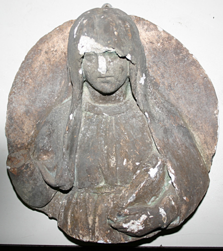 La vergine è raffigurata a mezzo busto in atto benedicente, mentre la mano sinistra regge il Libro della Sapienza.