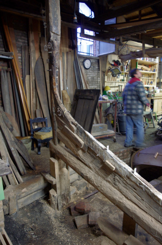Lo squero Tramontin ha visto succedersi tre generazioni di artigiani della stessa famiglia: Giovanni che ha iniziato il lavoro di squeraiolo, Nedis il figlio che l'ha continuato, e ora Roberto nipote attuale titolare. Le foto dei rappresentanti maschili della stirpe Tramontin sono appese al muro di sinistra (dalla parte del #cantier#) e vengono mostrate orgogliosamente ai vari e numerosi visitatori. Le caratteristiche fisiche dell'ambiente denotano una origine antica. La storia e il senso di una tradizione tramandata sono documentati però anche dalle tecniche di costruzione della gondola, tali da rendere uniche e riconoscibili le barche realizzate in questo squero. Dalla matrice #cantier# (trave sagomata che serve da base per la costruzione delle gondole), mantenuta uguale da oltre un secolo, escono gondole che poi vengono curvate a caldo, ottenendo forme morbide e armoniose. Procedura impossibile per i cantieri che hanno sostituito il legno massiccio con le tavole di compensato marino. Anche il profilo del fianco della gondola è caratteristico e consente una andatura sbilanciata ma in equilibrio.