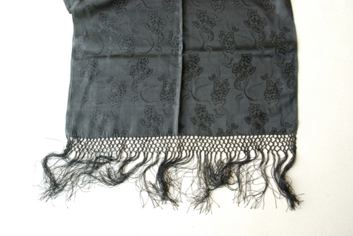 Sciarpa in seta damascata nera con frange applicate con quattro legature.Notizie storico-critiche