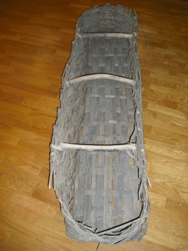 contenere le #galete# - La cesta veniva riempita di bozzoli e portata nel reparto bacinelle. Due o più persone la trasportavano utilizzando i manici.