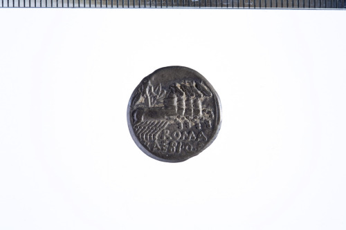 Testa galeata di Roma a s. con copricollo di pendenti; sotto il mento simbolo di valore X; c.p.