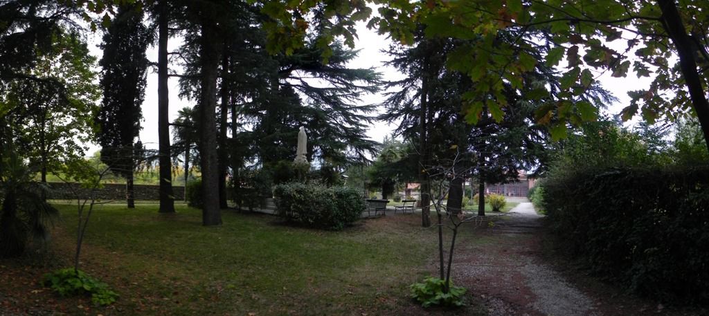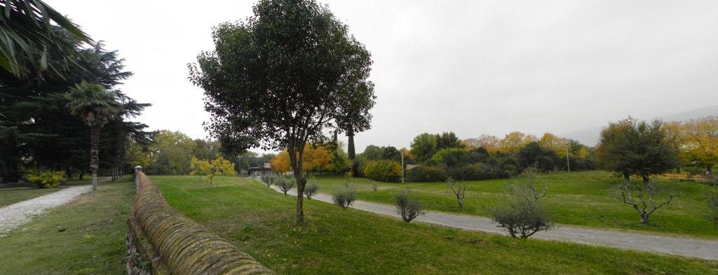 L'area verde di pertinenza della villa è suddivisa in modo netto in più ambienti: a sud si aprono due giardini di forma regolare, tra loro collegati, oltre i quali si sviluppa il breve parco che costeggia il corso del fiume; i terreni ad ovest sono ad uso agricolo, come pure quelli a nord, suddivisi dal viale d’ingresso in un vigneto a ovest ed un lotto con ulivi e noci ad est.