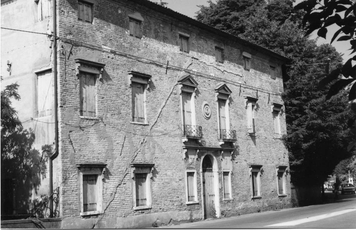 Edificio compatto su tre livelli, con tetto a padiglione. La facciata su strada presenta, a piano terra, un portale centinato di ingresso, a piano primo, due finestre con timpano triangolare.Specifiche: