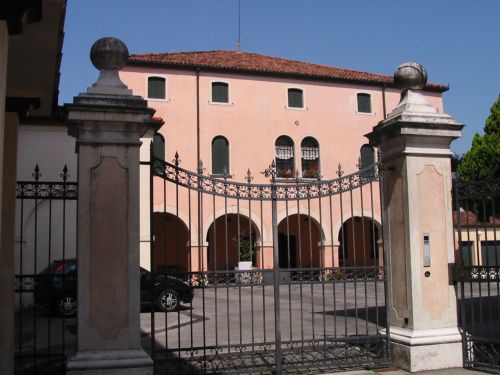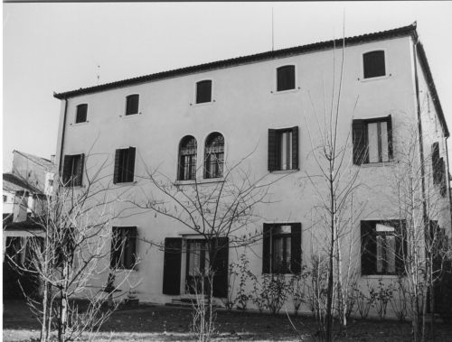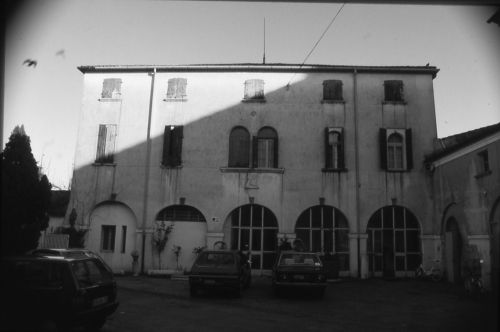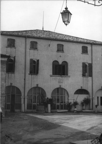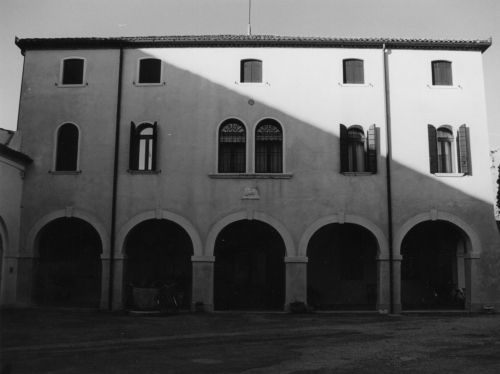 L'edificio a pianta quadrangolare presenta un porticato al piano terra. La facciata principale si apre su un cortile interno. I livelli superiori costituiti da cinque assi, sono caratterizzati da una serie di finestre arcuate.Specifiche: