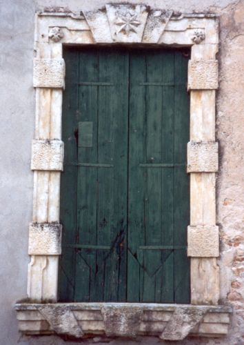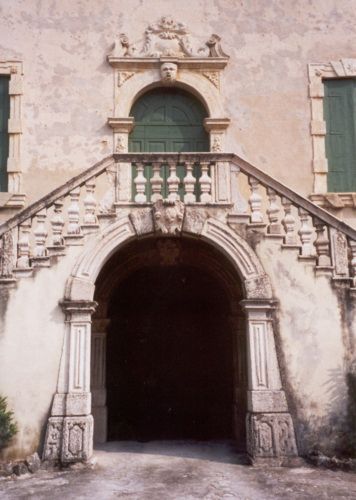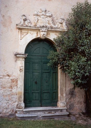 - Descrizione: Con mascherone in chiave di volta, piedritti e volta in pietra, sormontato da volute ed elementi decorativi in stucco, nel cui centro è inciso: «1701».