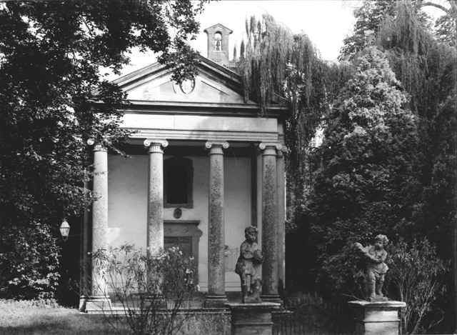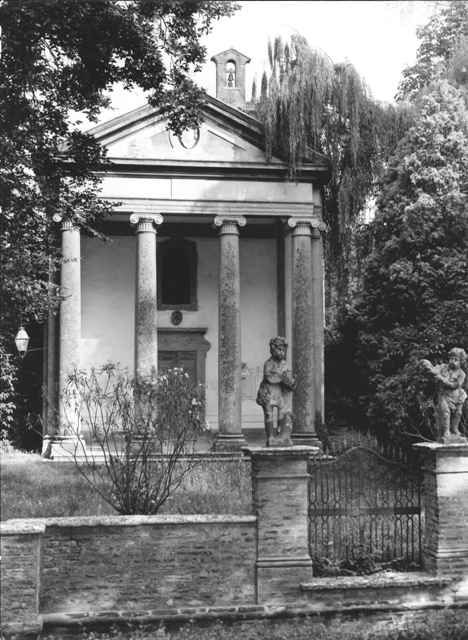 - Osservazioni: La cappella di famiglia, disposta in posizione angolare, con la facciata sul fronte nord-occidentale, rivolta verso l'esterno della corte, è immersa nella suggestiva fitta vegetazione del parco.