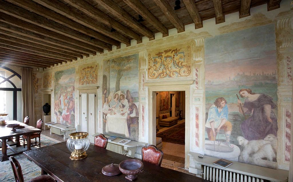 - Descrizione: Loggia: affresco raffigurante "L'ospitalità di Abramo sotto la quercia di Mamre".