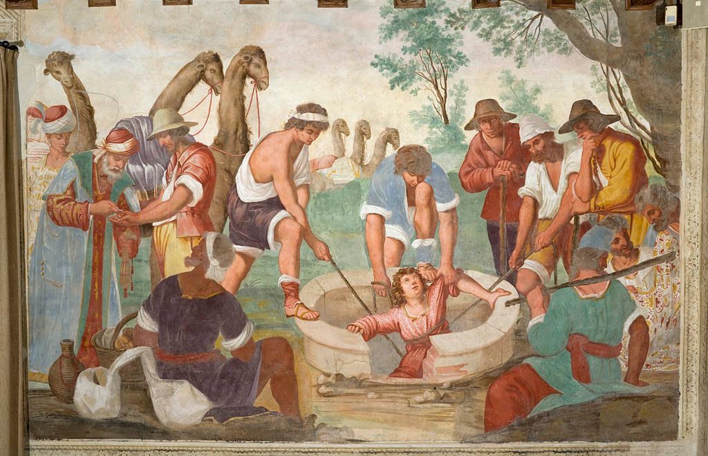 - Descrizione: Piano nobile - Stanza delle Allegorie: affresco raffigurante "Giuseppe gettato nel pozzo dai fratelli".
