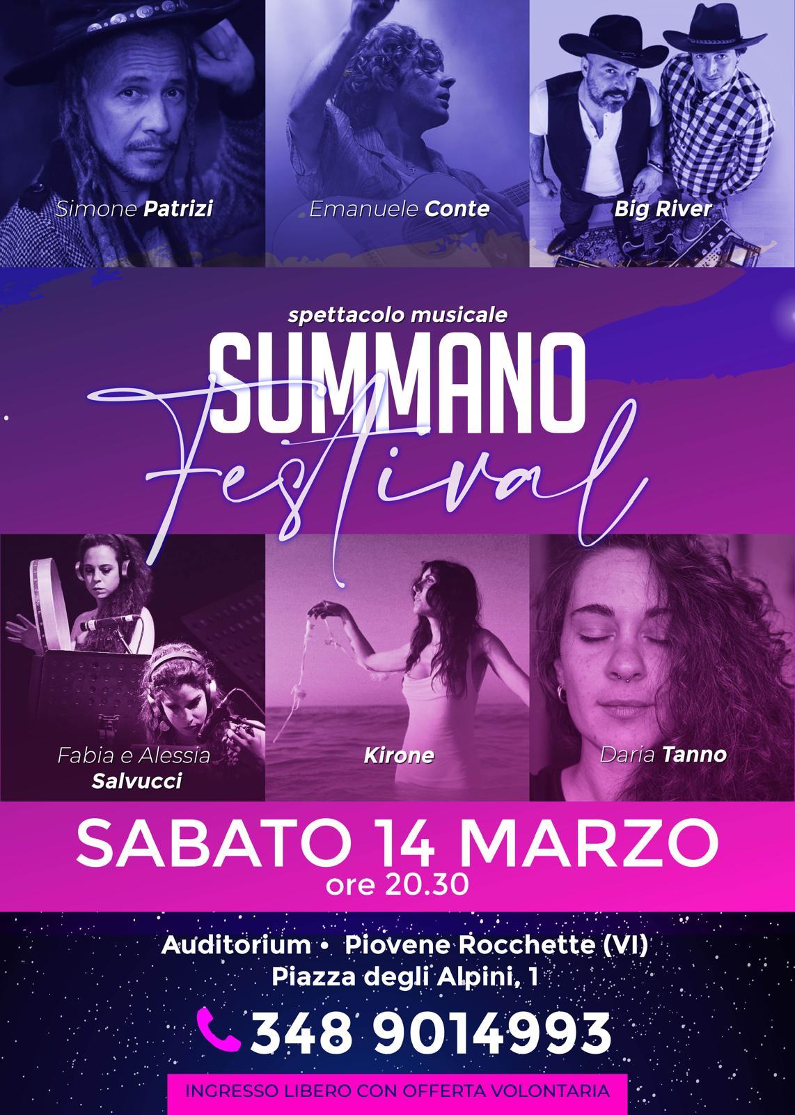 - Sabato 14 marzo alle 20:30: SUMMANO FESTIVAL - MUSICA
