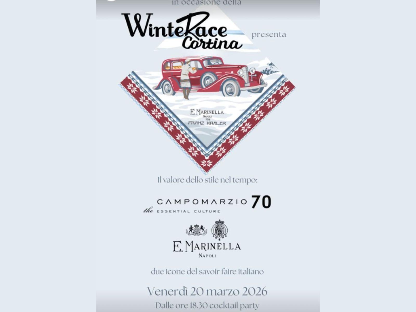 In occasione della WinteRace Cortina, prestigiosa manifestazione dedicata alle auto d’epoca costruite prima del 1976, prende vita un evento esclusivo che celebra l’eccellenza italiana. Nella raffinata cornice della boutique Franz Kraler, punto di riferimento del lusso a Cortina d’Ampezzo, si incontrano due icone del savoir-faire: E. Marinella Napoli, storica maison fondata nel 1914 e simbolo dell’eleganza sartoriale partenopea, e Campomarzio70, eccellenza romana nella profumeria artistica e nella cultura olfattiva contemporanea.