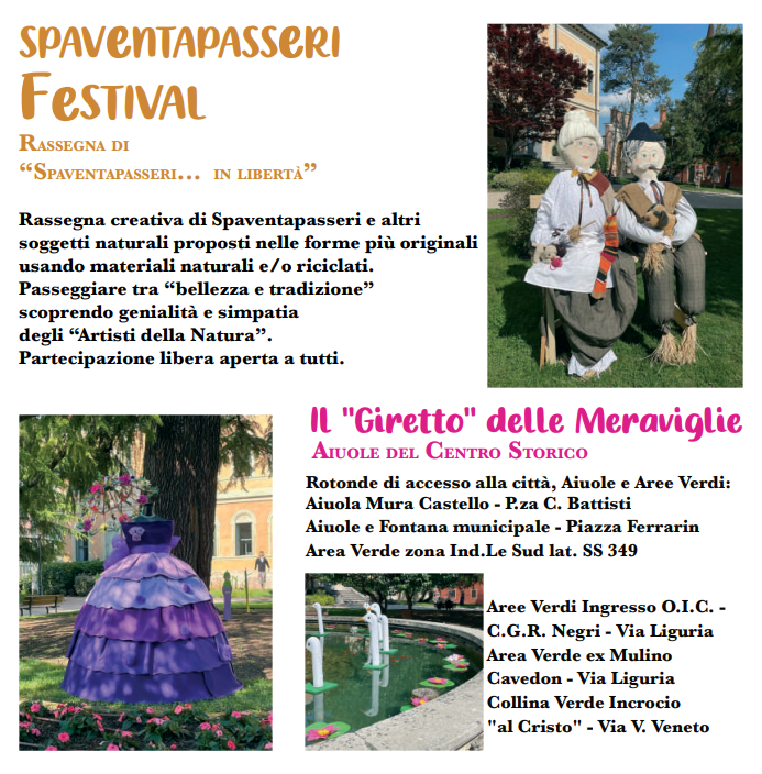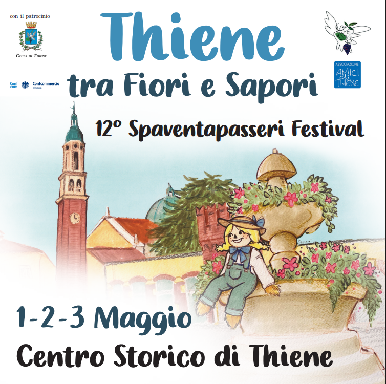A partire da venerdi 1 maggio 2026 fino a domenica 3 maggio 2026 presso il Centro Storico di Thiene, si terrà il "12^ Spaventapasseri Festival".