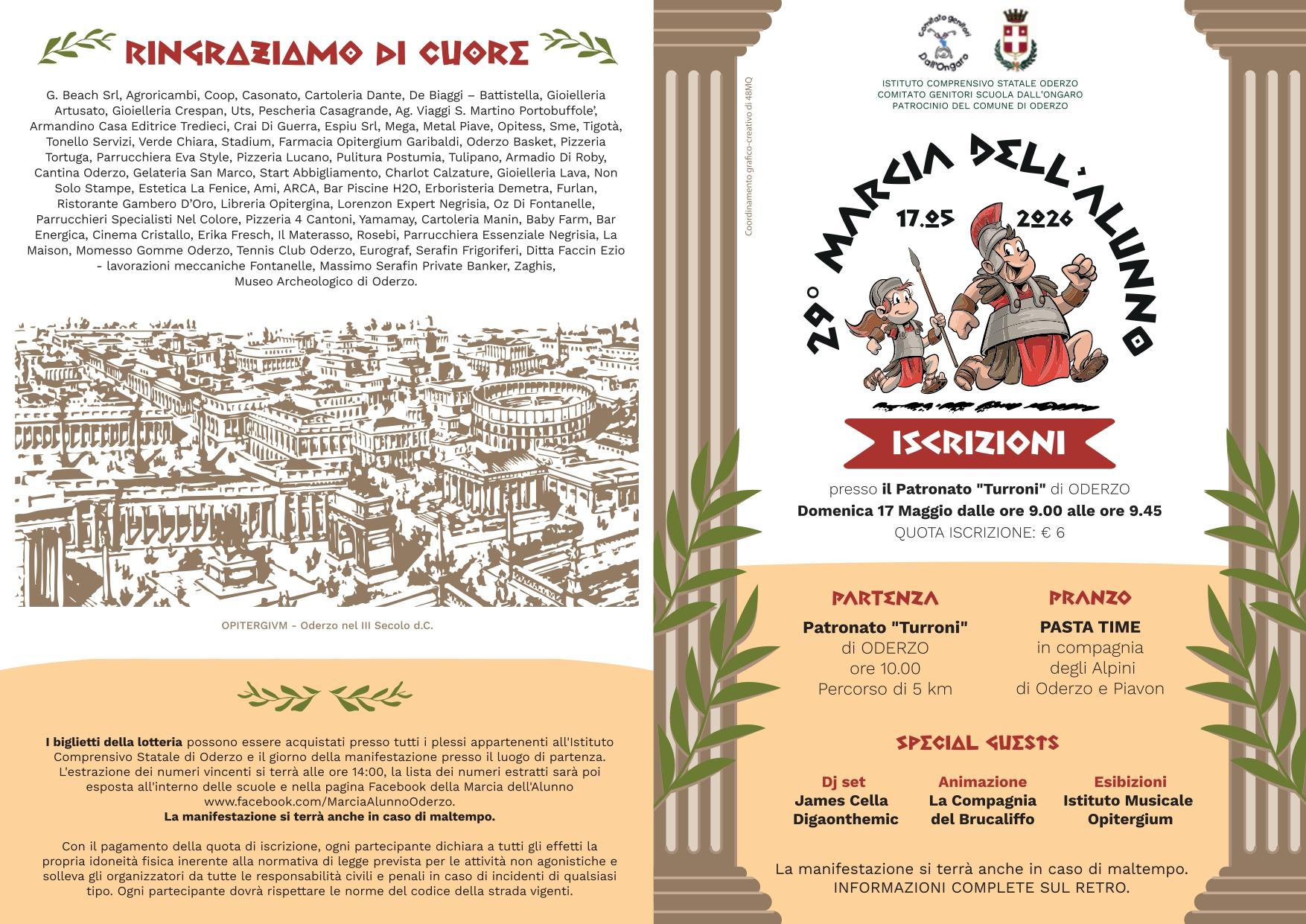 Torna a Oderzo la tradizionale Marcia dell’Alunno, una passeggiata non competitiva di circa 5 km aperta a genitori, alunni, insegnanti e a tutta la cittadinanza.