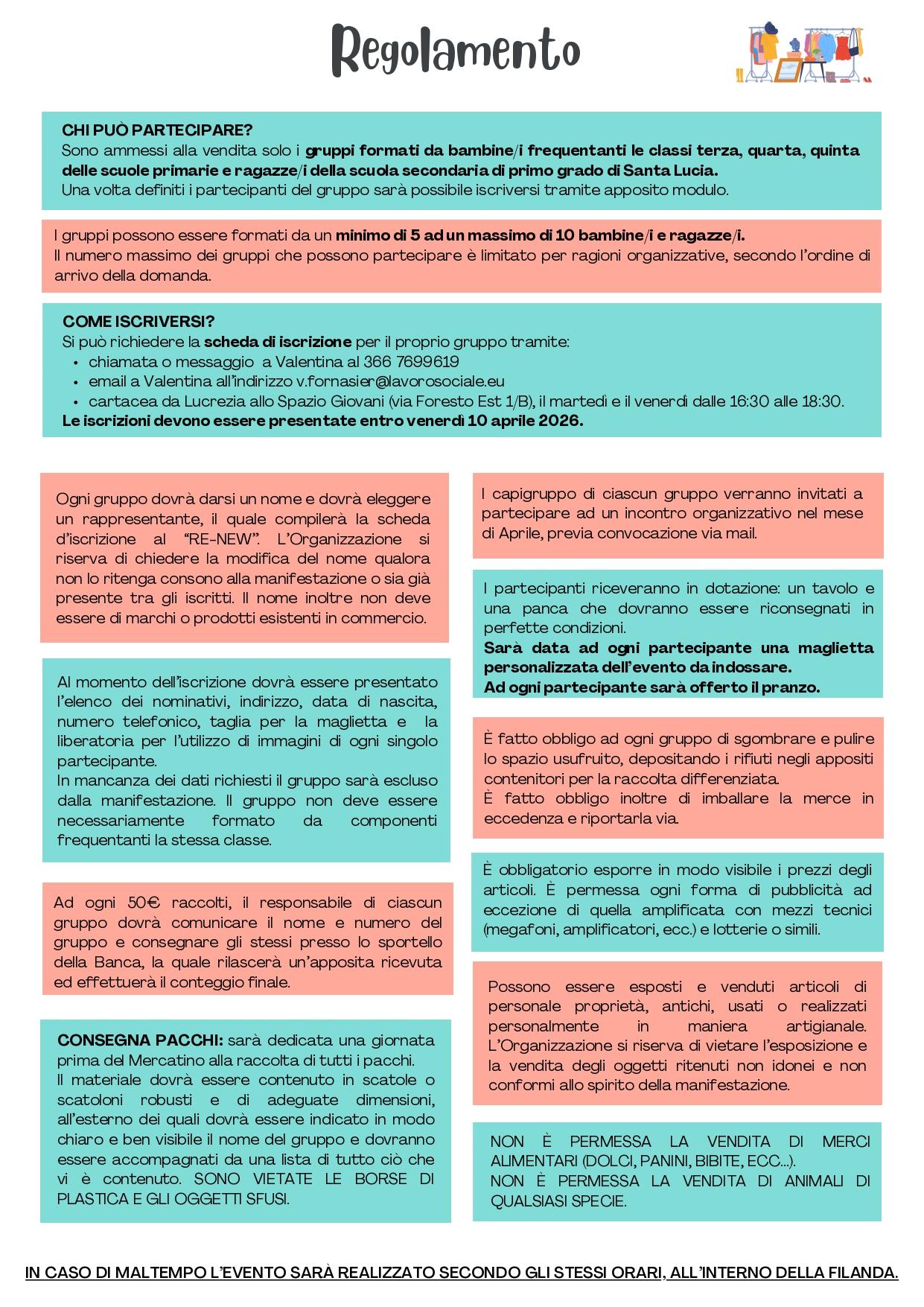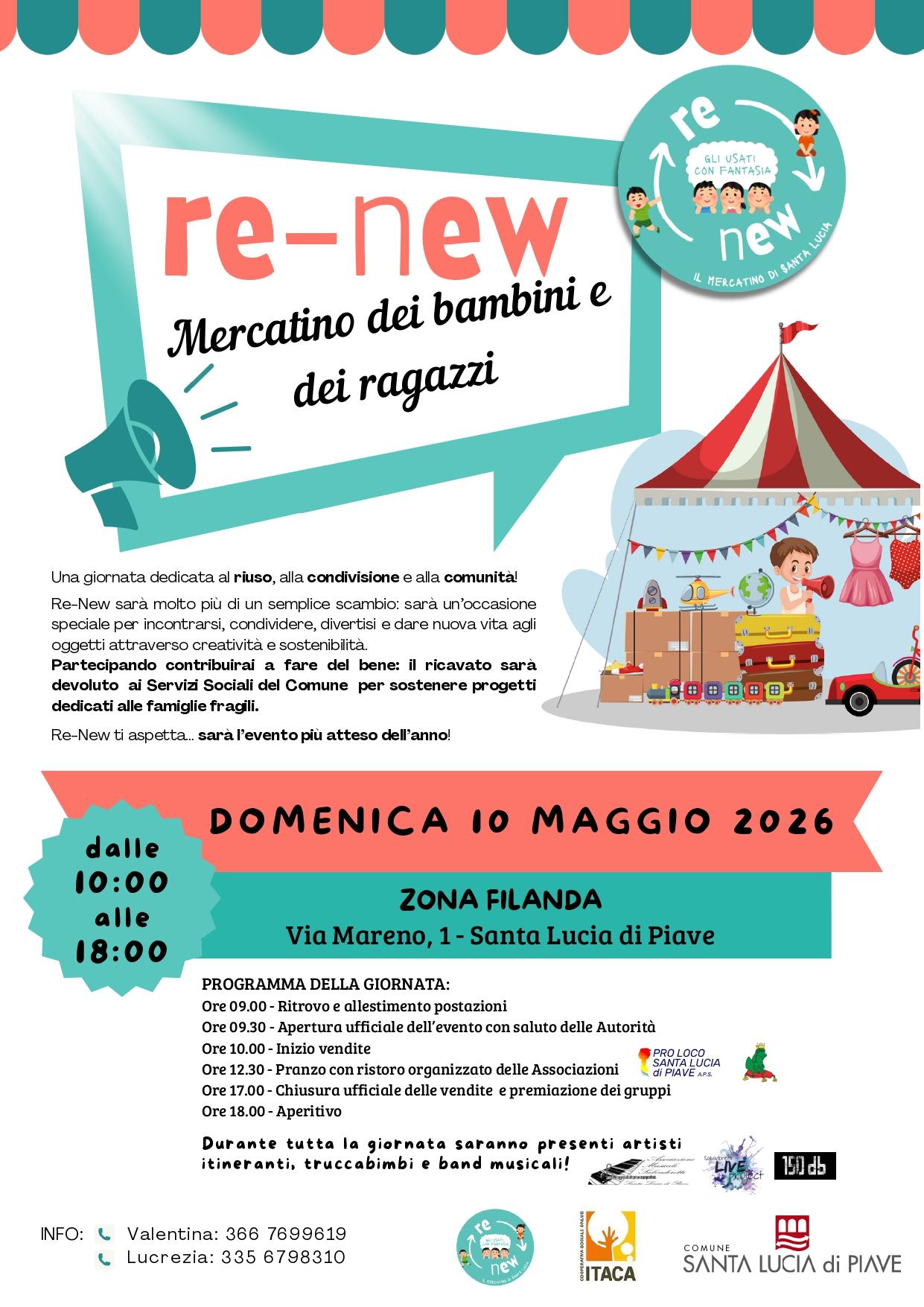 Domenica 10 maggio, la Zona Filanda di Santa Lucia di Piave ospita Re-New, il mercatino dove bambini e ragazzi ridanno vita agli oggetti attaverso il riuso creativo.