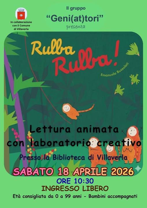 Sabato 18 aprile 2026 alle ore 10:30 presso la Biblioteca del Comune di Villaverla, potrete assistere ad una Lettura Animata affiancata da un Laboratorio Creativo.