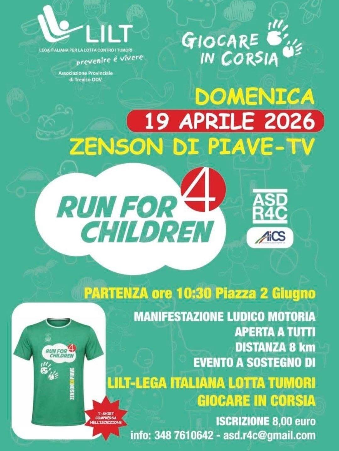 Una corsa a sostegno di LILT LEGA ITALIANA LOTTA TUMORI - GIOCARE IN CORSIA. L'evento si svolgerà nei luoghi più belli e caratteristici della zona, come il PARCO FLUVIALE DI ZENSON DI PIAVE.