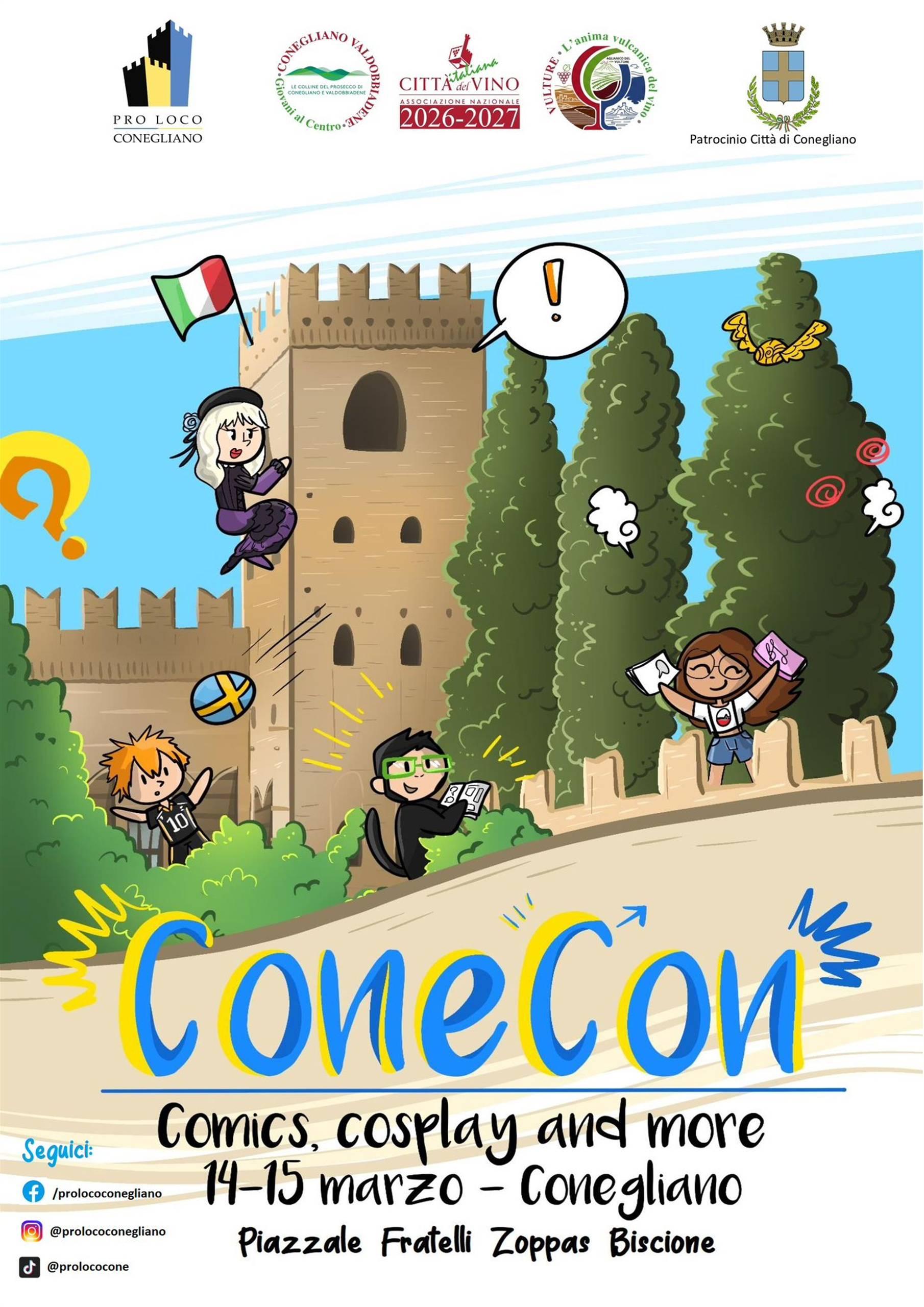 La Pro Loco Conegliano APS organizza per sabato 14 e domenica 15 marzo due giornate all'insegna del fumetto, dei cosplay contest, gare in cui i cosplayer sfilano sul palco indossando costumi di personaggi famosi (anime, manga, videogiochi, cinema), ed esperienze artistiche collaterali.