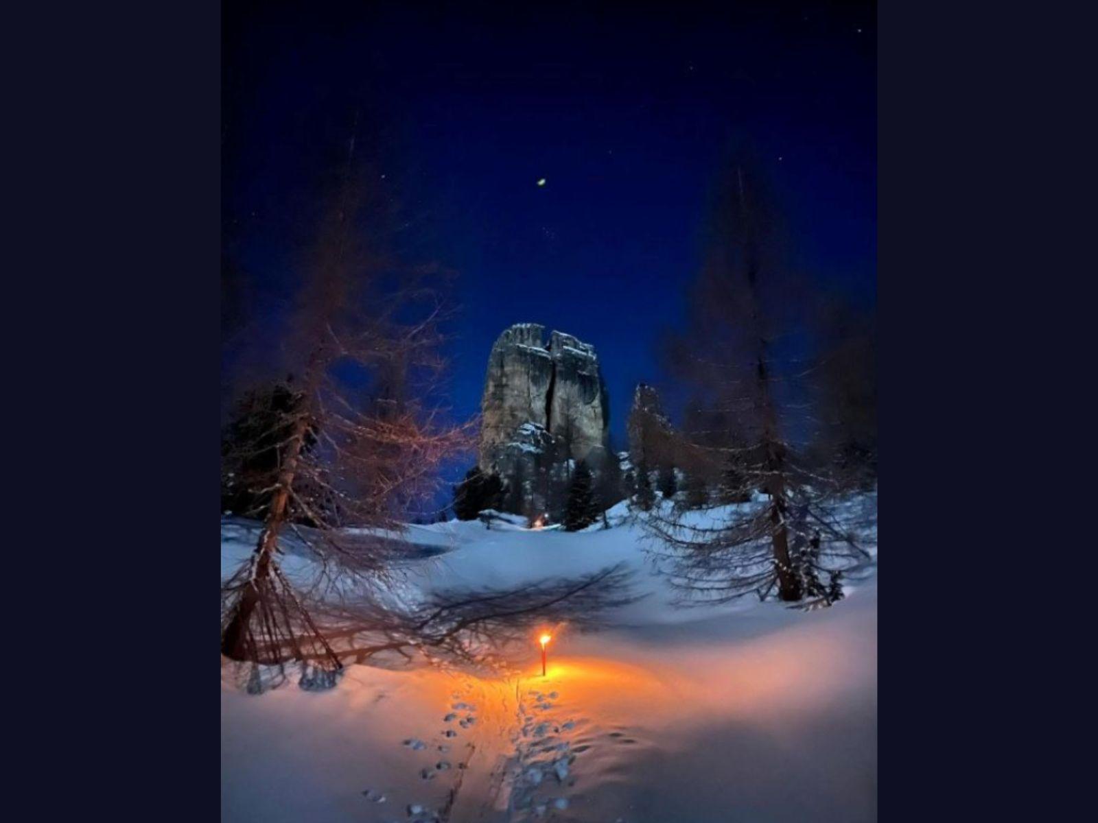 Il percorso prende vita ai piedi delle spettacolari Cinque Torri, nella località Bai de Dònes. Da qui gli atleti iniziano la loro salita nella notte, sci ai piedi e pelli di foca, seguendo un tracciato che si snoda tra boschi innevati e silenzi d’alta quota.