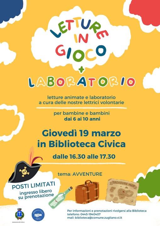 Giovedì 19 marzo 2026, alle ore 16:30, presso la Biblioteca Civica di Zugliano, si terranno le "Letture in gioco", organizzate dalla Biblioteca di Zugliano e a cura delle lettrici volontarie.