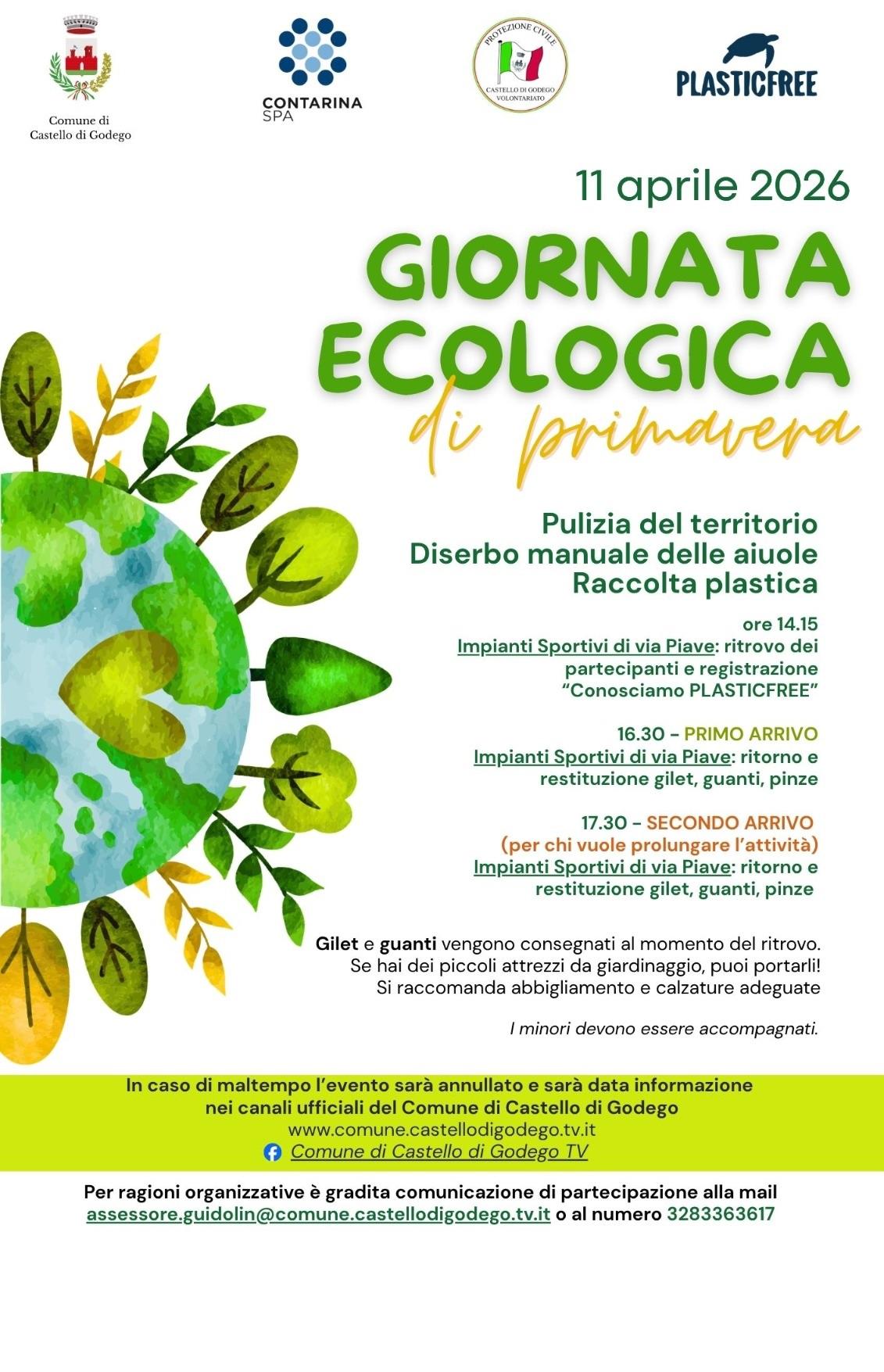 Il Comune di Castello di Godego, in collaborazione con Contarina SPA, Protezione Civile e Plastic Free, organizza per sabato 11 aprile 2026 la Giornata Ecologica di Primavera, un’iniziativa dedicata alla cura e alla pulizia del territorio comunale.