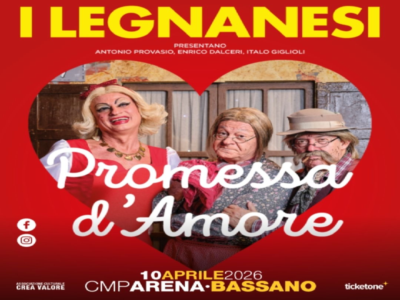 ''Promessa d'amore" è l' attuale spettacolo teatrale dei Legnanesi (Antonio Provasio, Enrico Dalceri, Italo Giglioli, ecc.), una commedia che gioca sull'equivoco di una coppia che scopre di non essere mai stata legalmente sposata dopo anni, creando caos comico e malintesi esilaranti, tra gag, pettegolezzi e numeri di rivista, fedele allo stile classico della compagnia. Lo spettacolo è in tournée in varie città, con date previste anche nel 2026, e riscuote grande successo di pubblico, con teatri spesso sold-out.