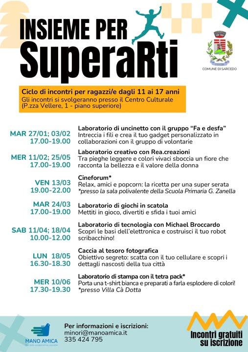 A Sarcedo, presso il Centro Culturale in Piazza Vellere 1, si terrà un ciclo di 7 incontri rivolti ai ragazzi e ragazze dagli 11 ai 17 anni dal titolo "Insieme per SuperaRti"