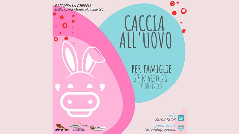 Sabato 28 marzo 2026 dalle 10:00 alle 12:30 si terrà la "Caccia all'uovo" presso la Fattoria La Greppia a Malo.