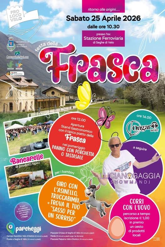 Sabato 25 aprile 2026 dalle ore 10:30 presso l'ex Stazione Ferroviaria di Seghe di Velo si terrà la Festa della Frasca.