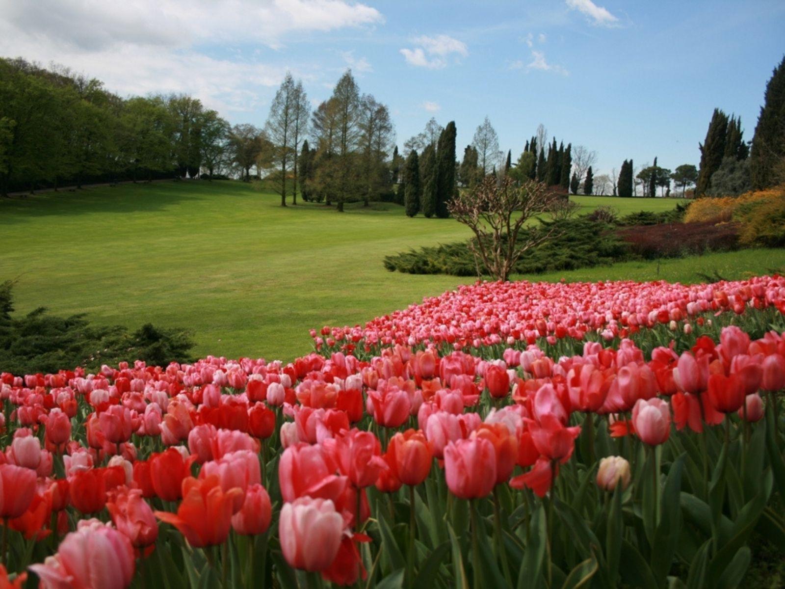 Oltre un milione di tulipani, insieme a narcisi, giacinti e muscari, con incantevoli allium colorano il Parco dando vita a scenografie naturali di grande impatto.