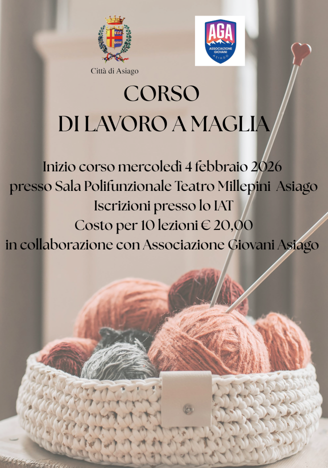 Corso lavoro a maglia con una signora esperta di knitting presso la Sala Polifunzionale del Palazzo del Turismo Millepini di Asiago.