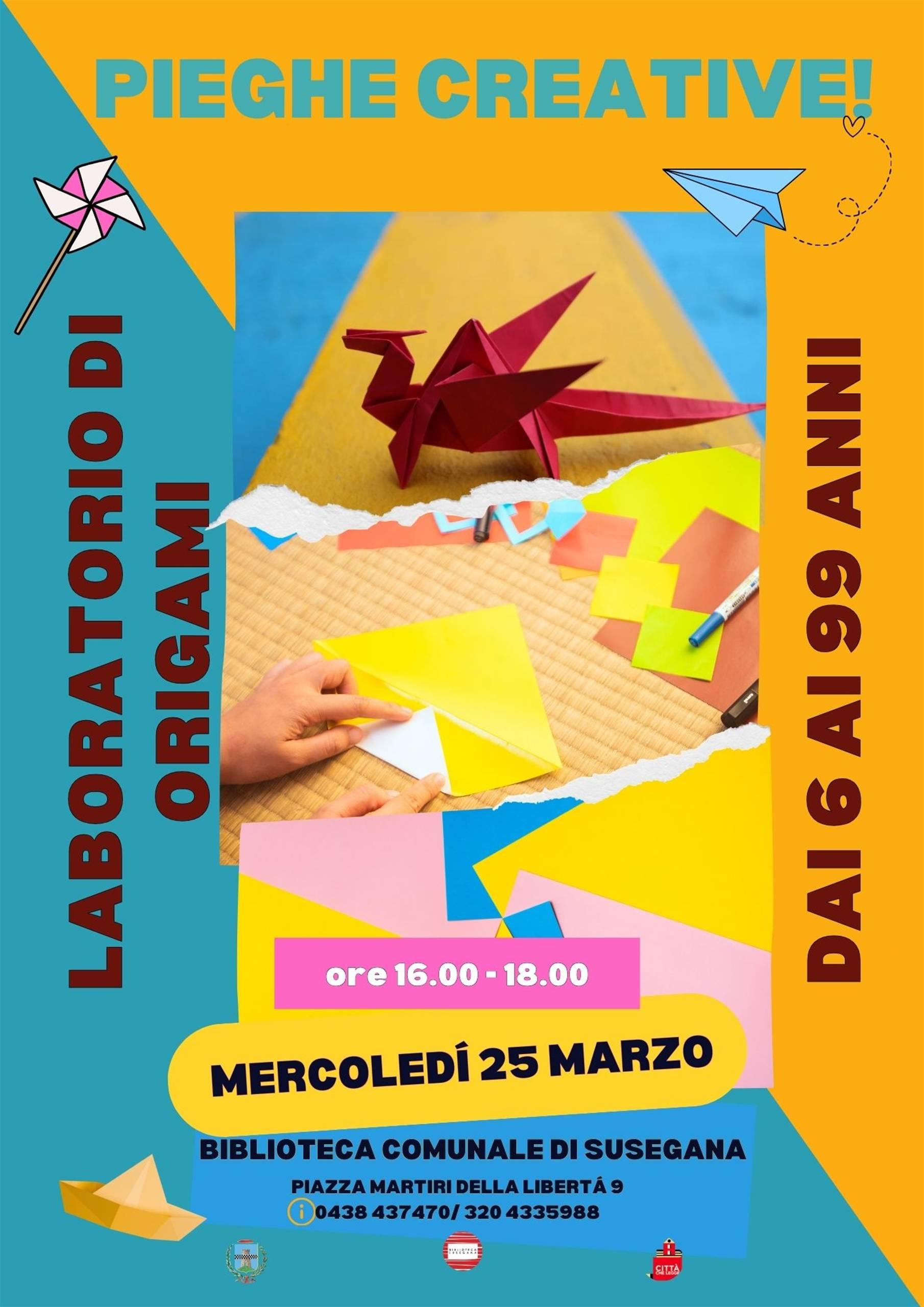 La Biblioteca di Susegana propone “Pieghe creative”, un laboratorio dedicato all’arte dell’origami aperto a partecipanti dai 6 ai 99 anni.