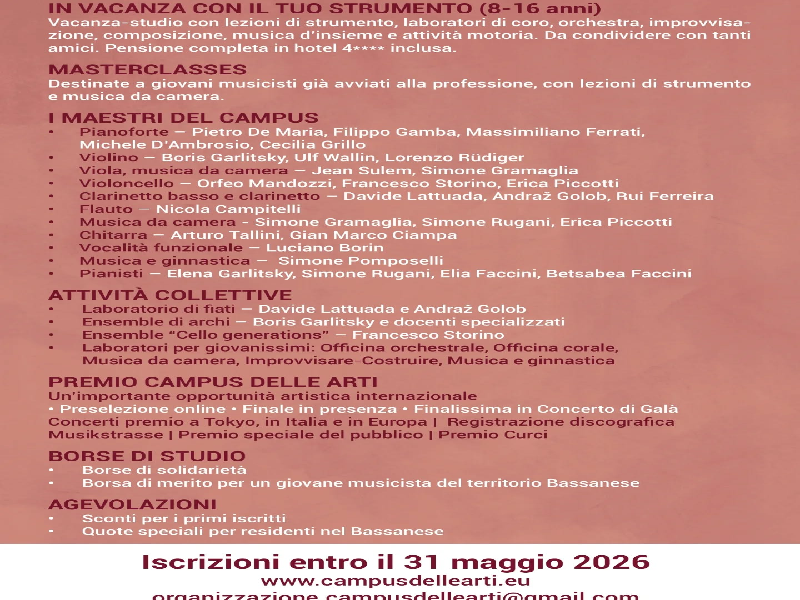 Tutte le informazioni sul sito: www.campusdellearti.eu