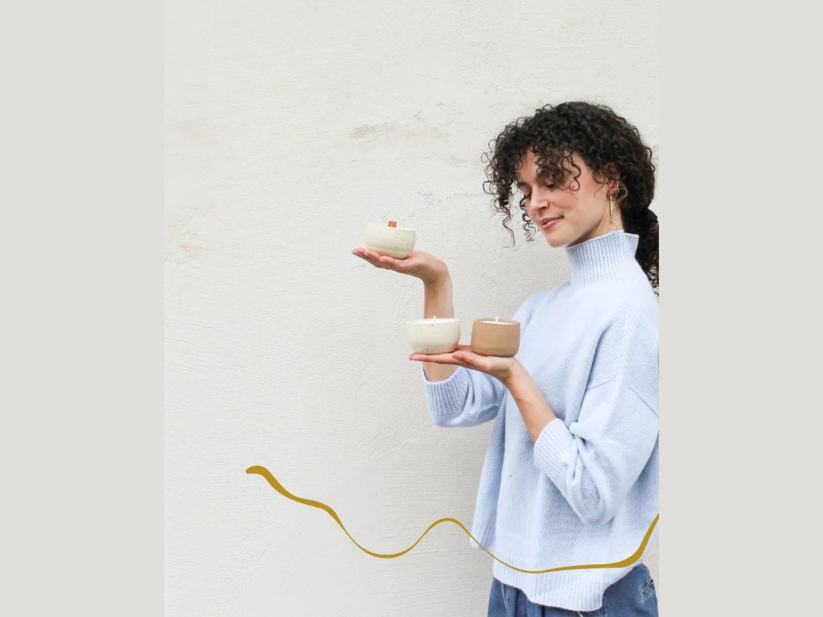 La luce della candela sarà custodita in contenitori di ceramica fatti a mano, scelti per la loro bellezza unica e poetica data dalle piccole imperfezioni artigianali. L'obiettivo è creare un oggetto che porti con sé un senso di casa e di calore, frutto di un lavoro svolto con intenzione e armonia.