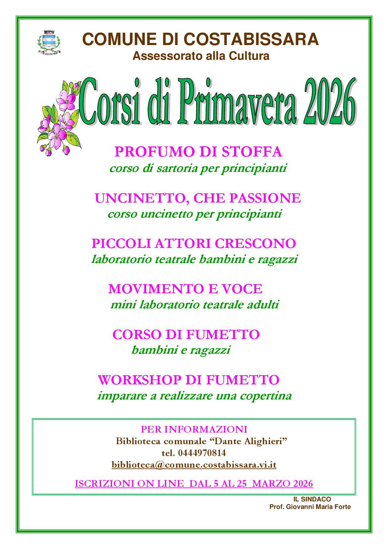 Per informazioni contattare la Biblioteca comunale "Dante Alighieri" (iscrizioni online dal 5 al 25 marzo 2026).
