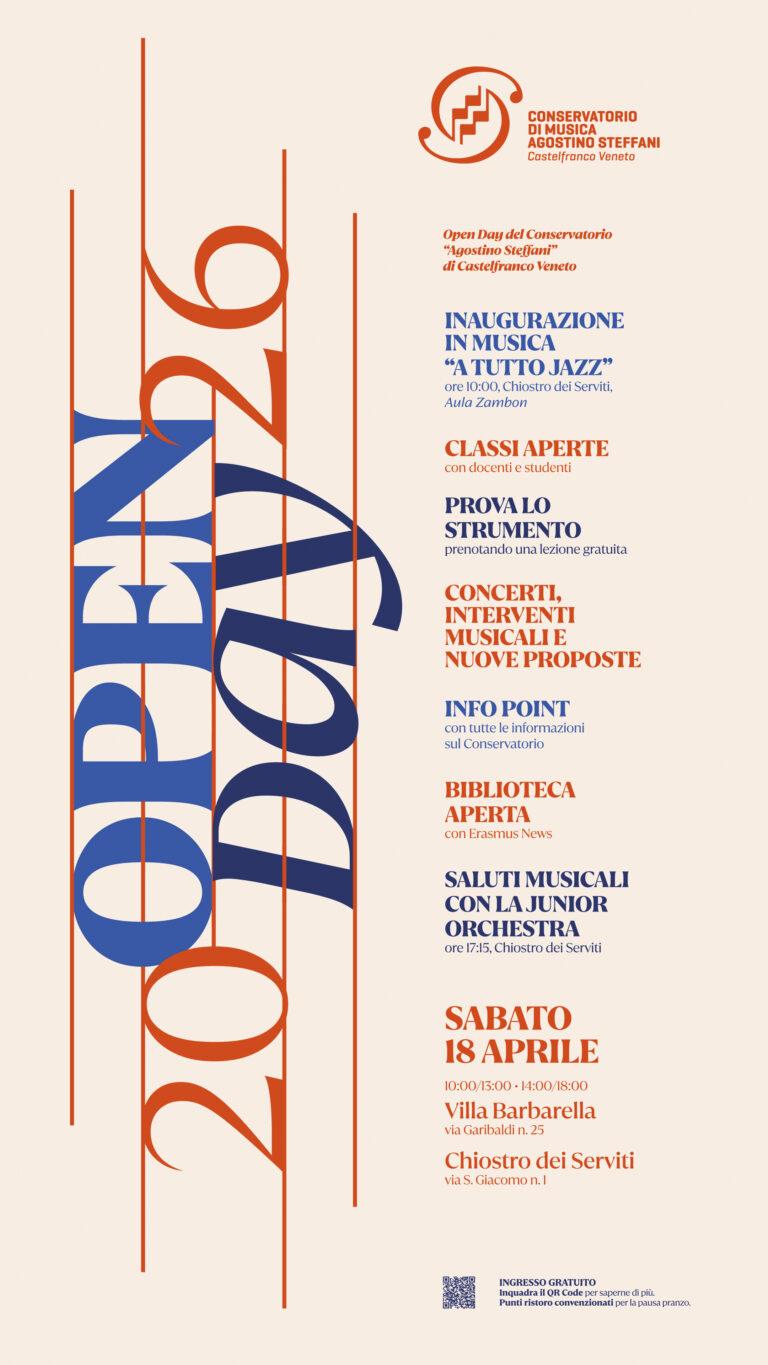 Il Conservatorio Agostino Steffani invita il pubblico a scoprire la sua offerta formativa durante l'Open Day che si terrà sabato 18 aprile presso la splendida cornice di Villa Barbarella.
