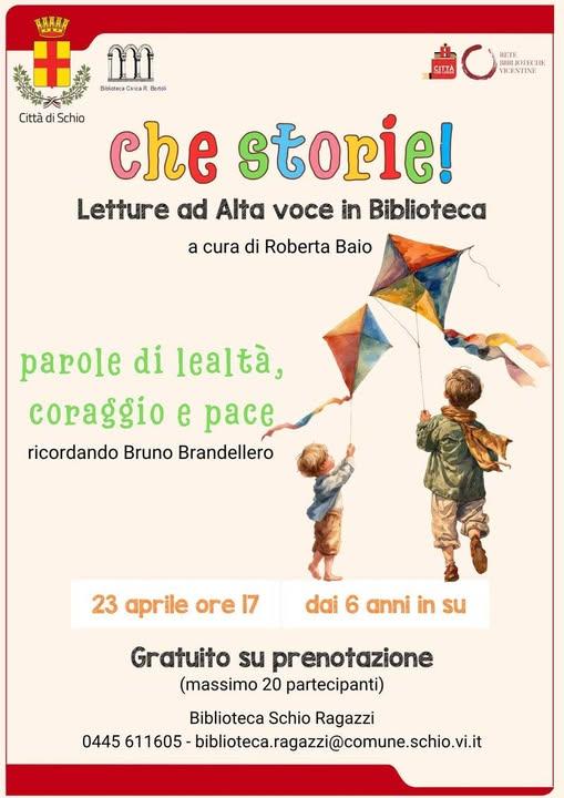 Giovedì 23 aprile alle ore 17:00, presso la Biblioteca civica R.Bortoli di Schio, si terrà "Che storie! Letture ad Alta voce in Biblioteca " a cura di Roberta Baio, organizzato dalla Biblioteca Civica R.Bortoli e con il patrocinio di Città di Schio.