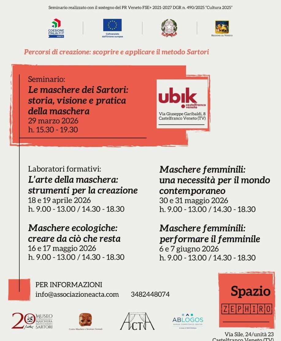 Nel pomeriggio si terrà un seminario dedicato ai laboratori formativi dedicato alle maschere ecologiche: creare da cio' che resta