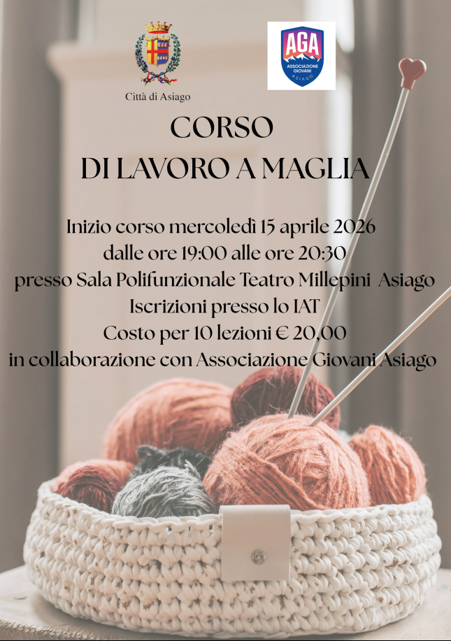 Corso lavoro a maglia con una signora esperta di knitting presso la Sala Polifunzionale del Palazzo del Turismo Millepini di Asiago.