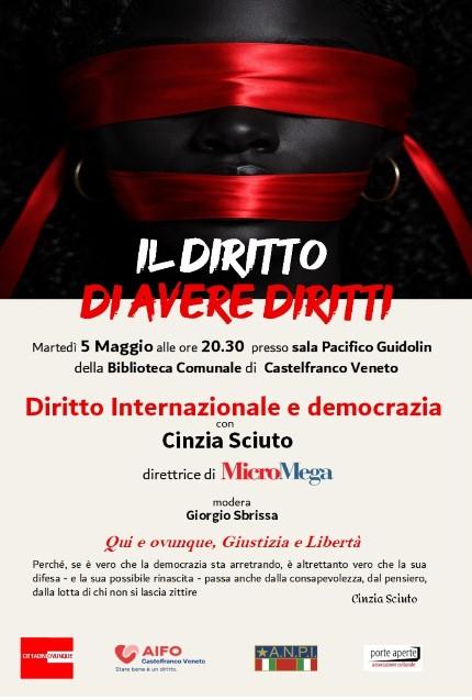 Martedì 5 maggio, alle ore 20:30, la Sala Pacifico Guidolin della Biblioteca Comunale di Castelfranco Veneto ospita l'incontro culturale dal titolo "Il Diritto di avere Diritti".