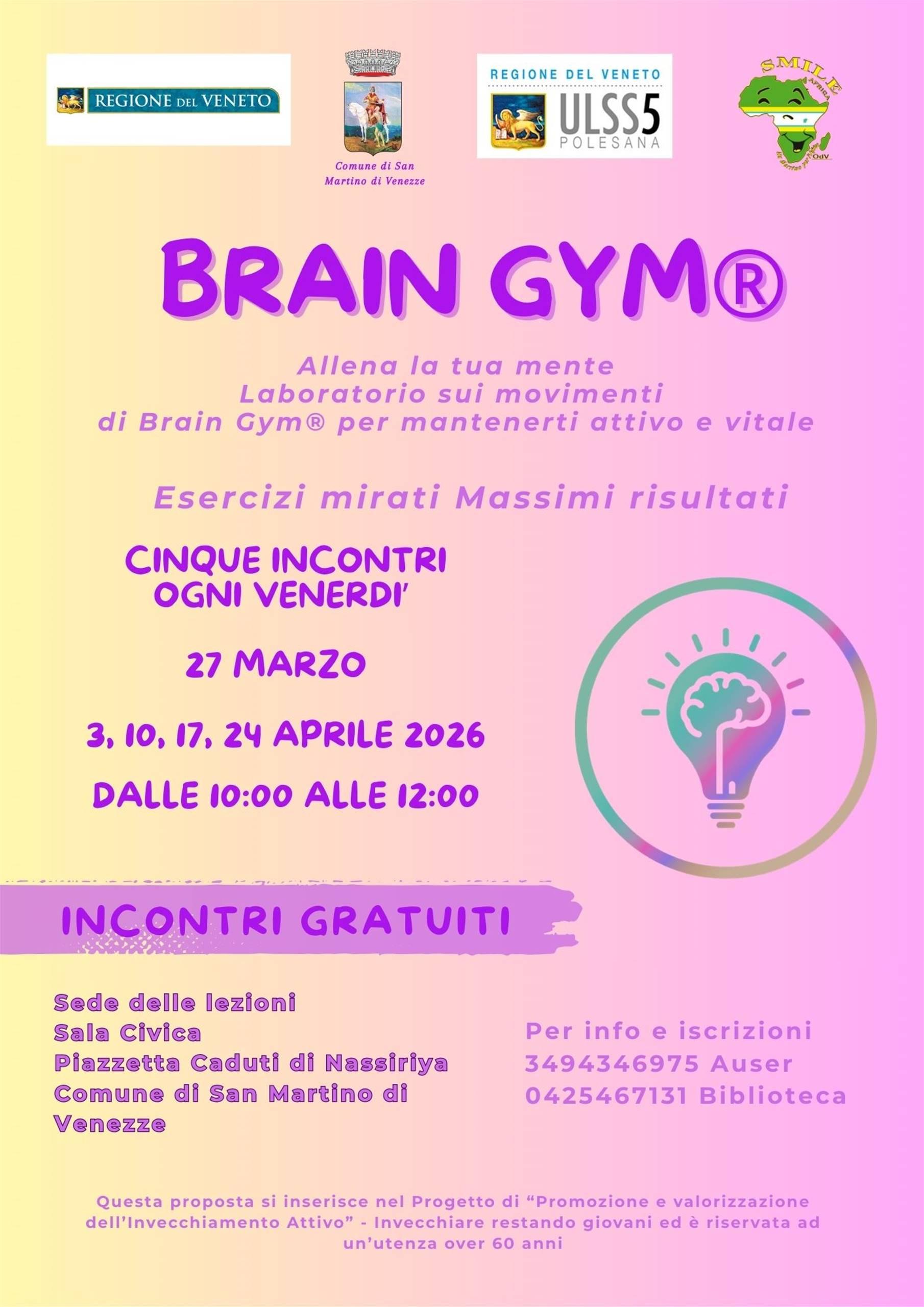 Il comune di San Martino di Venezze in collaborazione con Smile Africa ODV propone cinque incontri di Brain Gym ® a partire da: