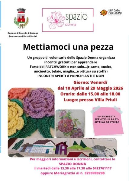 L'Assessorato ai Servizi Sociali del Comune di Castello di Godego, in collaborazione con lo Spazio Donna, presenta "Mettiamoci una pezza", un ciclo di incontri gratuiti dedicati alla scoperta e all'approfondimento delle arti manuali.