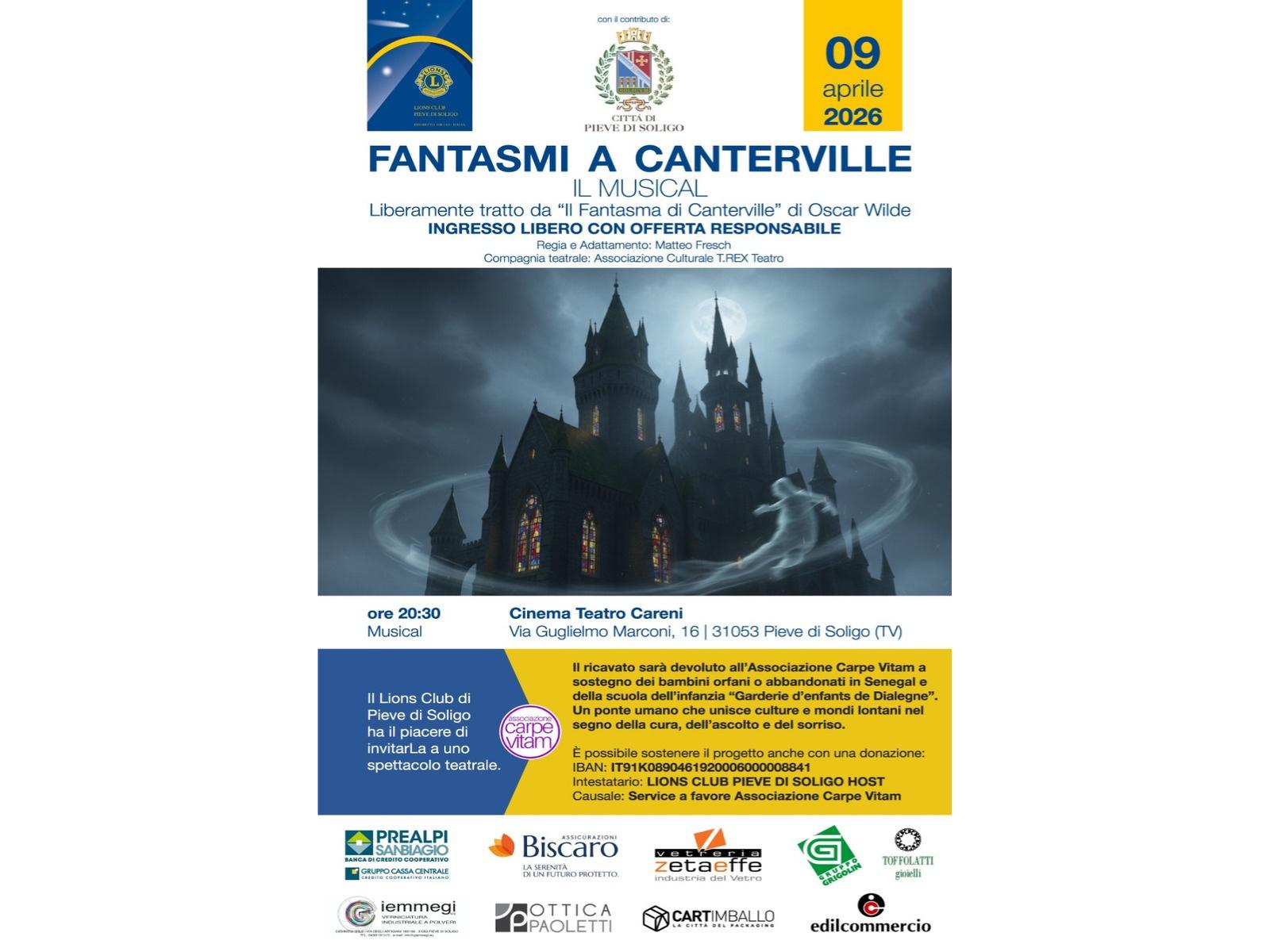 Fantasmi a Canterville è il titolo del musical che, grazie alla regia e all'adattamento di Matteo Fresch, verrà portato in scena dalla compagnia teatrale Associazione culturale T.REX Teatro per portare il pubblico direttamente nel celebre racconto Il Fantasma di Canterville di Oscar Wilde, da cui lo spettacolo è liberamente tratto... Quali misteri si celano nel teatro castello di Canterville, infestato da strane presenze e dalla maledizione del temibile Lord Simon?
