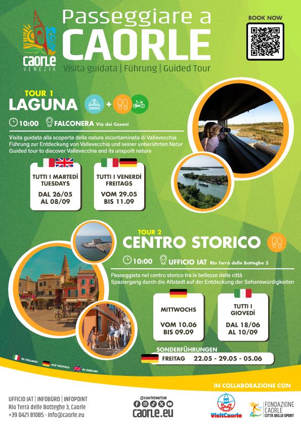 Raggiungete a piedi o in bicicletta l’attracco sulla laguna di Caorle alla fine della spiaggia di Levante, salite in barca (anche con la bici) e proseguite con l’interessante visita all’oasi di Brussa-Vallevecchia a piedi con guida naturalistica.