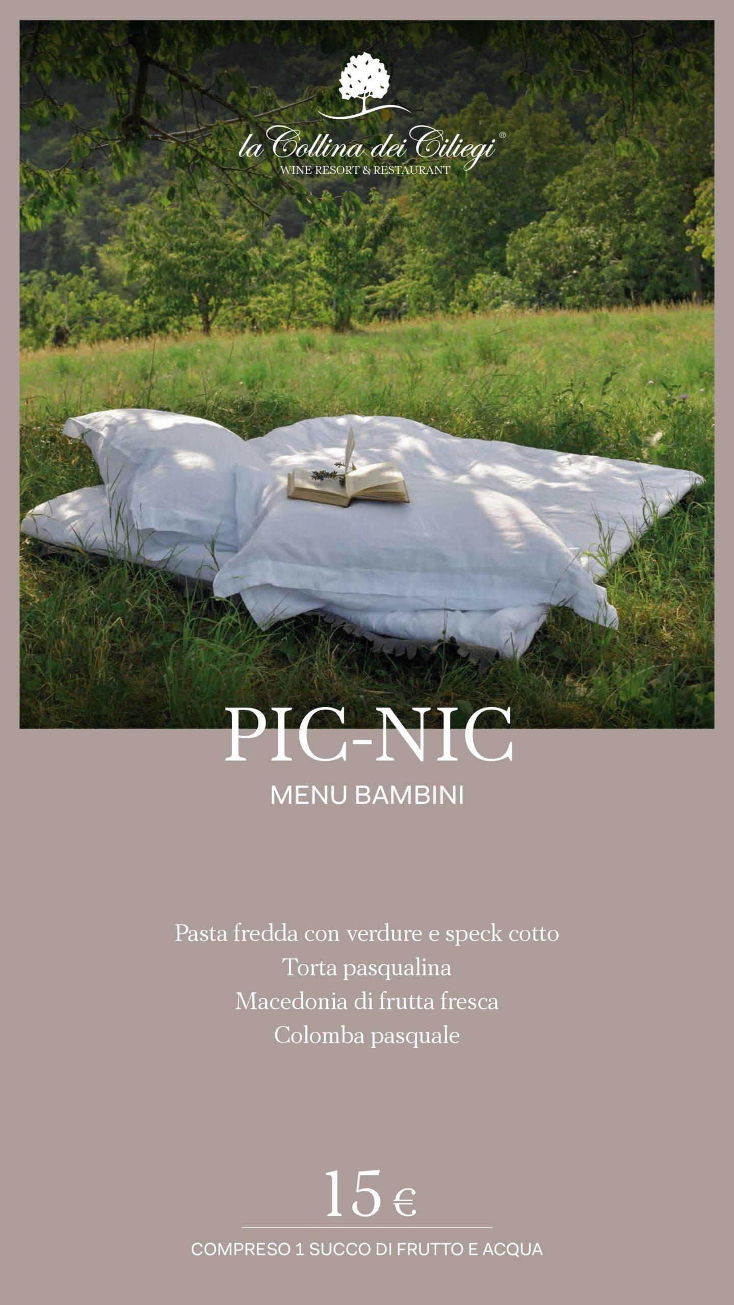- Menù Bambini (15 € compreso 1 succo di frutta e acqua): Pasta fredda con verdure e speck cotto, torta pasqualina, macedonia di frutta fresca e colomba pasquale.