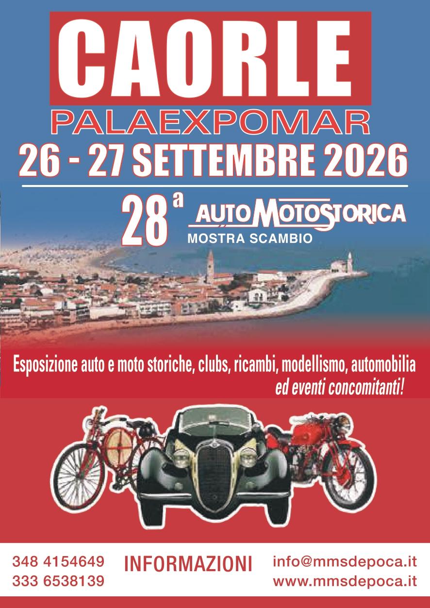 Esposizione di auto e moto storiche e compravendita di pezzi di ricambio.