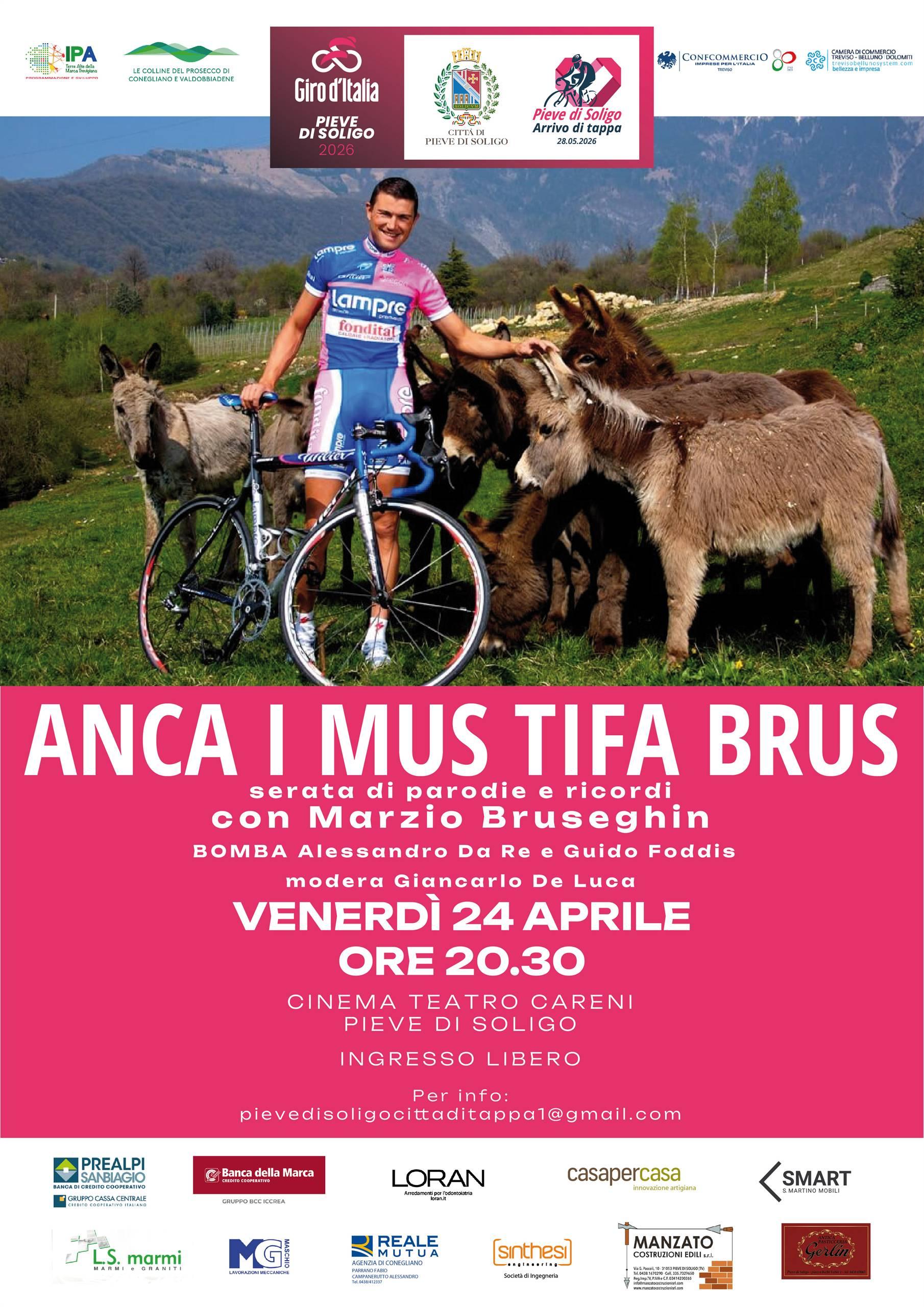 L'evento si configura come un viaggio tra aneddoti inediti, parodie e riflessioni sulla carriera del "Brus", celebre non solo per le sue doti di scalatore e cronoman, ma anche per la sua autenticità e il legame profondo con le radici rurali, simboleggiate dai suoi inseparabili asini. Sul palco, ad arricchire il racconto, ci saranno le incursioni di BOMBA Alessandro Da Re e Guido Foddis, che insieme al moderatore Giancarlo De Luca garantiranno un ritmo dinamico e divertente, capace di coinvolgere sia i tifosi storici che i semplici curiosi.