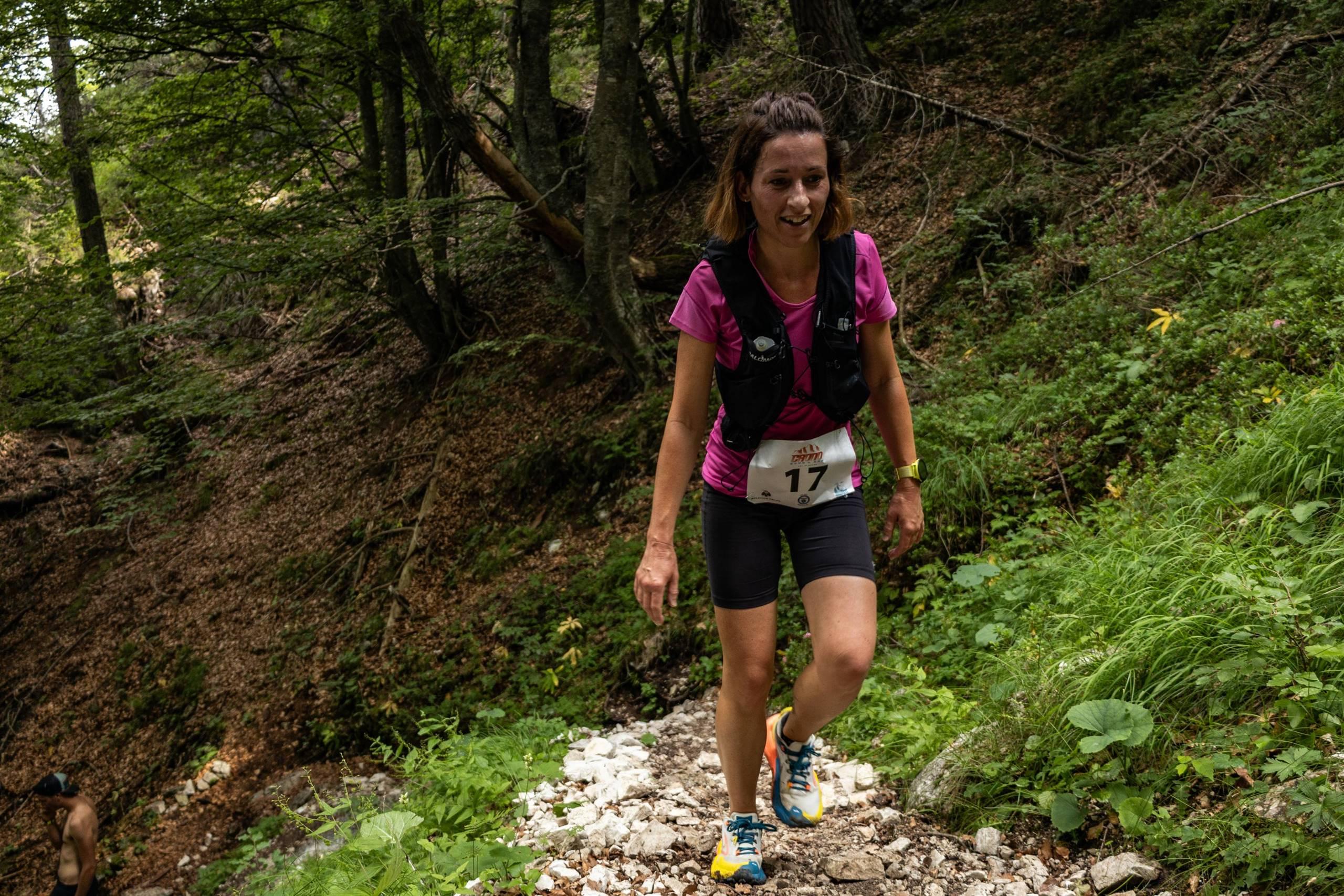 A quota 1170m si abbandona la traccia principale per imboccare il Triòl del Vach de Mezodì, una variante poco frequentata che ci porterà, attraverso boschi e radure su percorso ora più corribile e veloce, al vecchio pascolo di Casera del Mezodì (1350 mt ). Il sentiero ritorna nel bosco e, dopo un tratto ancora filante, ci deposita ai piedi del Valòn Pìcol, dove ci attende l' ultimo strappo su traccia tortuosa per salire finalmente al piccolo altopiano di Sora 'l Sas e quindi al traguardo.
