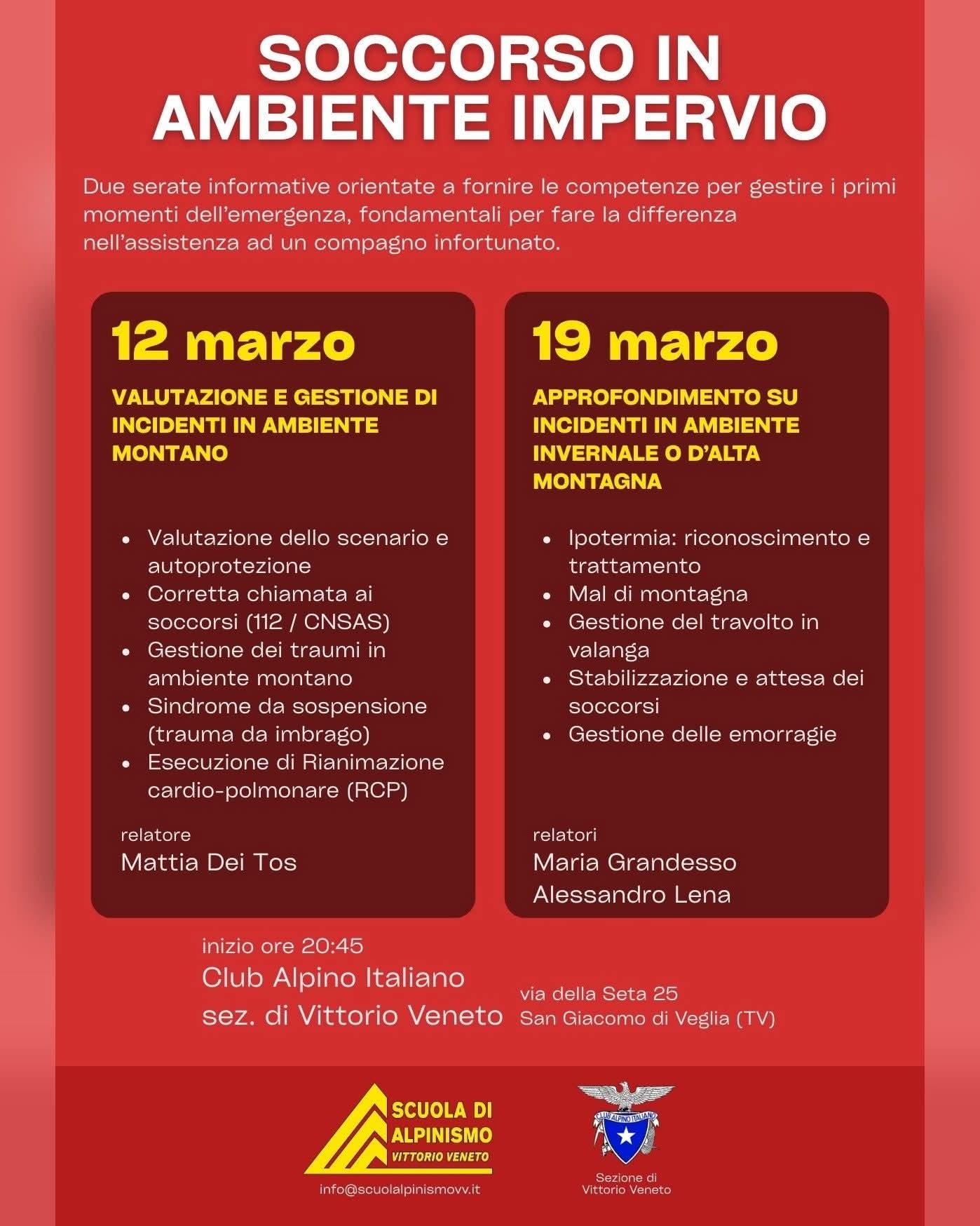 12 marzo: Valutazione e gestione di incidenti in ambiente montano