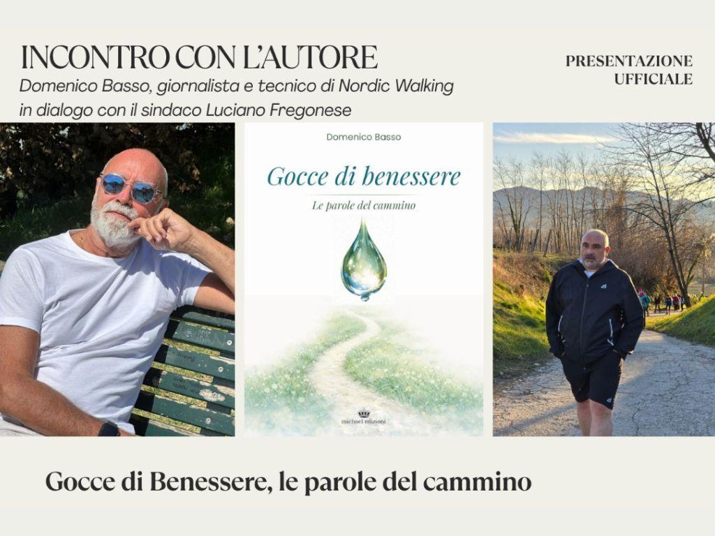 Inizia a Valdobbiadene il percorso di presentazione del libro Gocce di benessere – Le parole del cammino di Domenico Basso, giornalista e tecnico di Nordic Walking.